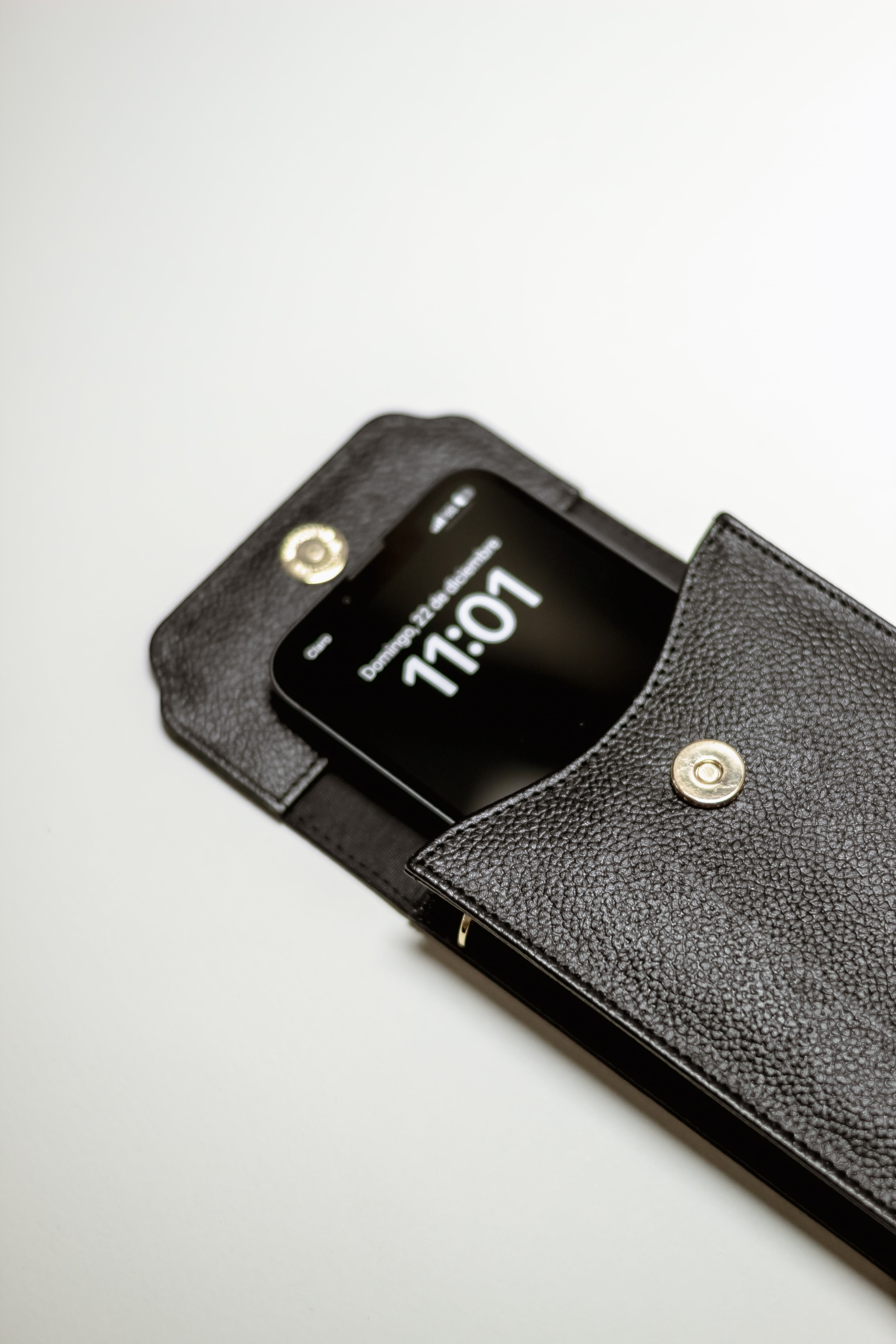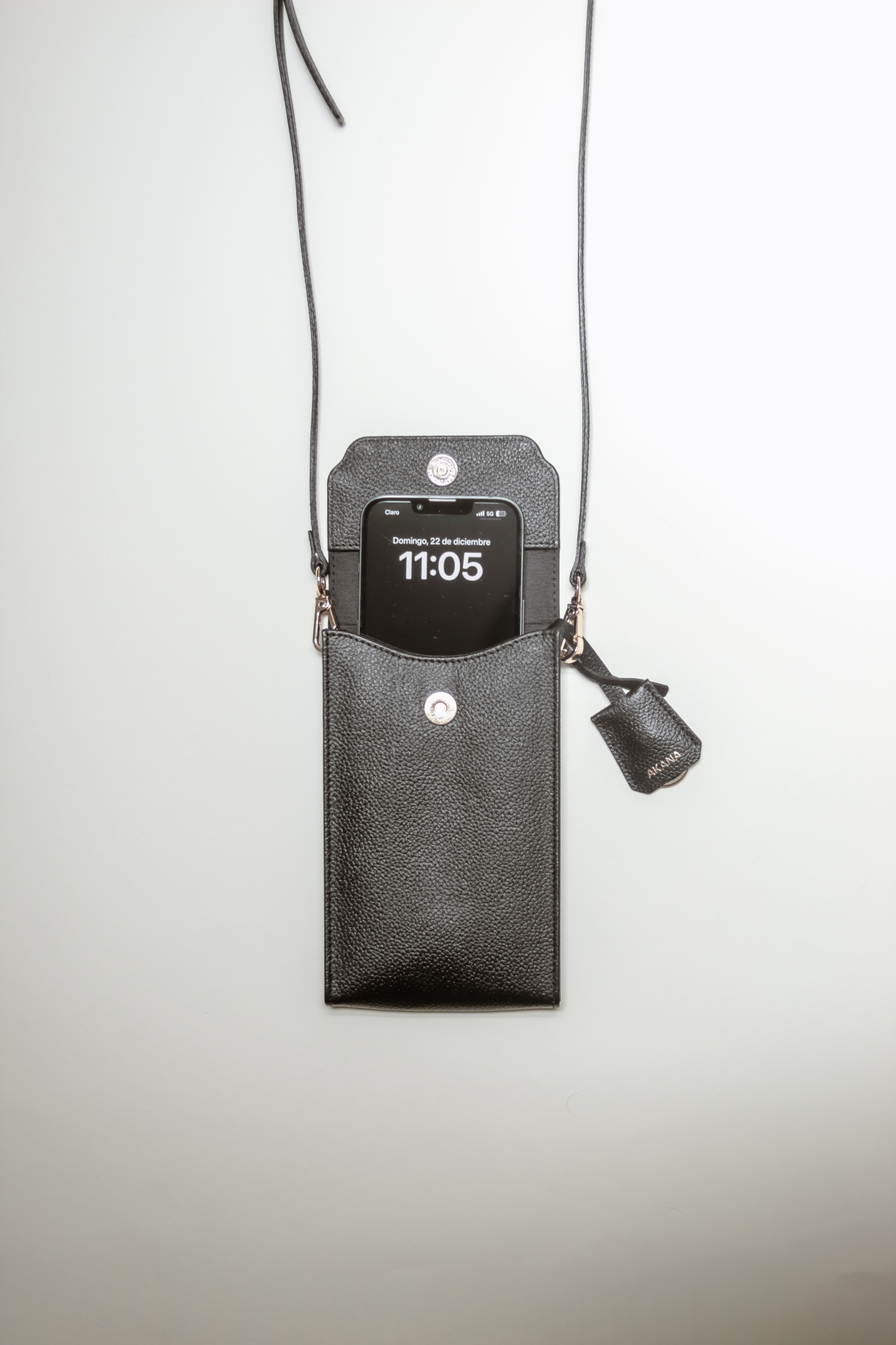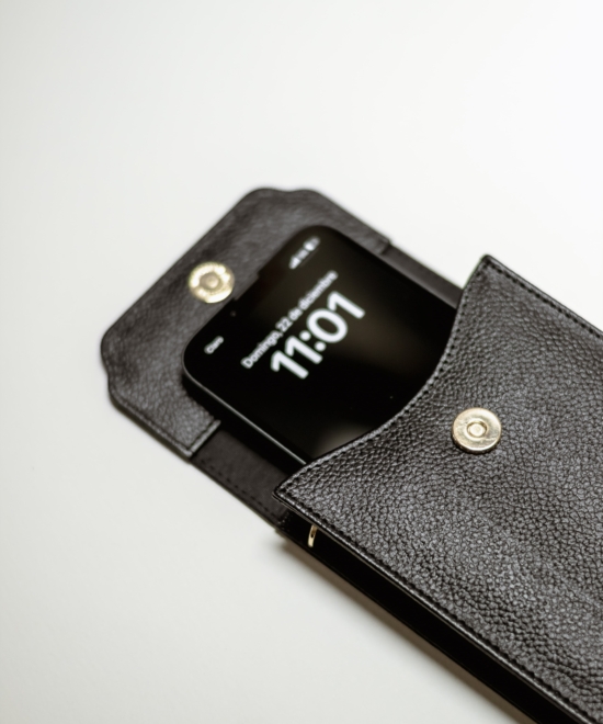 Nuestro soporte para móvil tiene el tamaño ideal para llevar tu teléfono, pasaporte, tarjetas y llaves.